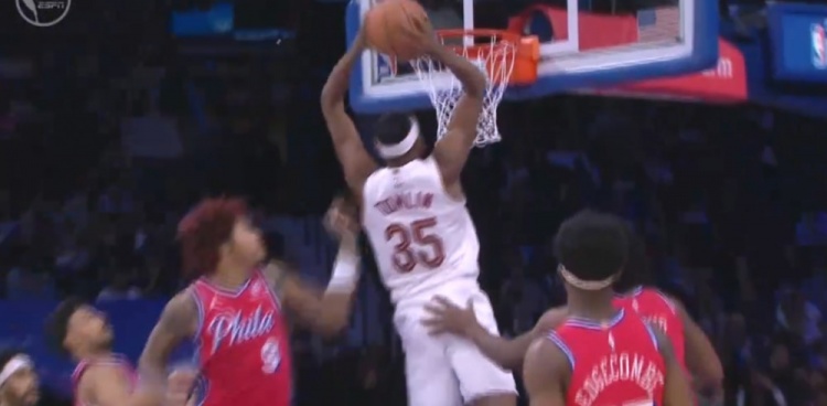 开云应用-追回来了!汤姆林切入接泰森妙传双手砸扣2+1