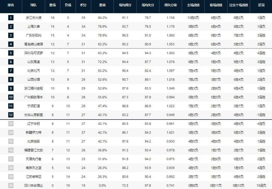 CBA第19轮的比赛已经结束,这轮比赛打得非常激烈,四强里的广厦男篮、上海男篮和青岛男篮都输掉了比赛,只有广东男篮力克了山西男篮。其他的比赛中,北京男篮输给了同城对手北控男篮,曾经的三连冠强队辽宁男篮更是不敌新疆男篮遭遇四连败,沦为了一支弱旅。先来看一下这轮比赛的具体对阵情况,然后看一下积...